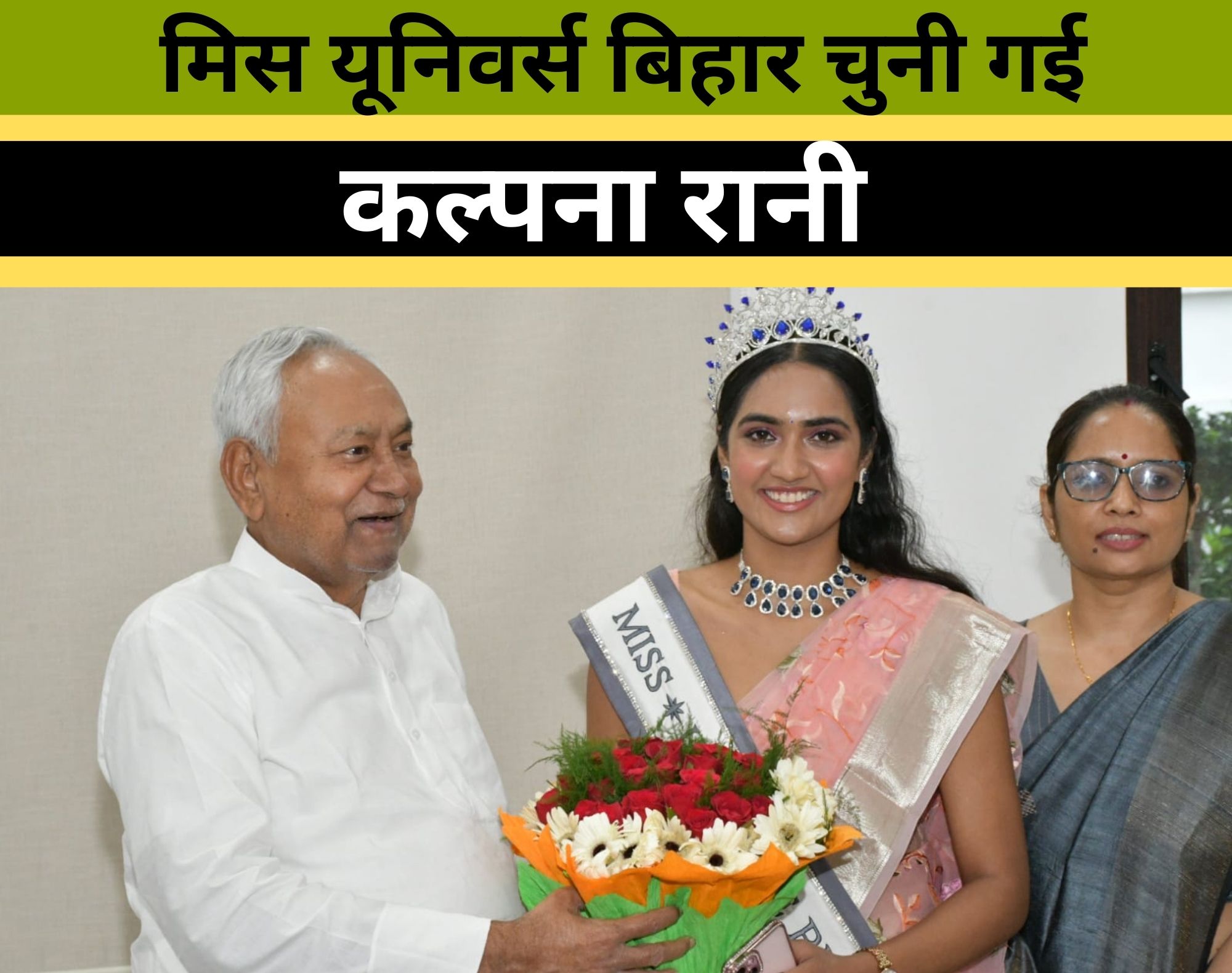 काजल रानी हाल ही में पटना में आयोजित मिस यूनिवर्स बिहार प्रतियोगिता में मिस यूनिवर्स बिहार चुनी गई हैं और अब वह दिल्ली में आयोजित होने वाली मिस यूनिवर्स इंडिया प्रतियोगिता में बिहार का प्रतिनिधित्व करेंगी। इस मौके पर बिहार के जल संसाधन मंत्री विजय कुमार चौधरी, सांसद संजय, विधान पार्षद संजय गांधी, मिस यूनिवर्स बिहार संस्था की निदेशक नीतू कुमारी और काजल रानी के परिवार के सदस्य भी उपस्थित थे।
