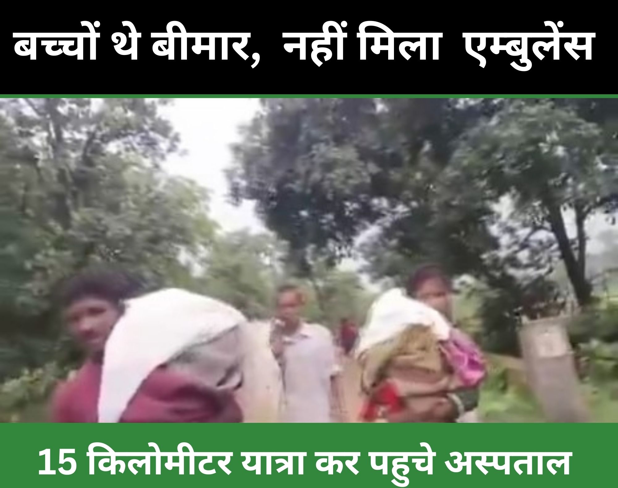 माता-पिता बच्चों को लेकर जिमलगट्टा स्वास्थ्य केंद्र पहुंचे, लेकिन वहां डॉक्टरों ने दोनों बच्चों को मृत घोषित कर दिया। अस्पताल तक पहुँचने के लिए माता-पिता को कीचड़ भरे जंगल के रास्ते 15 किलोमीटर पैदल चलना पड़ा। एंबुलेंस की उपलब्धता न होने के कारण बच्चों के शवों को भी माता-पिता को कंधे पर रखकर वापस ले जाना पड़ा।