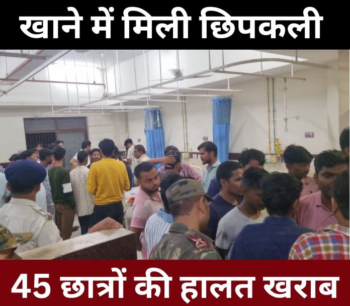 Bihar News :- बिहार के बेतिया में फूड प्वाइजनिंग की घटना से शुक्रवार की रात 45 इंजीनियरिंग छात्रों की तबीयत बिगड़ गई। सभी बीमार छात्रों को बेतिया के गवर्नमेंट मेडिकल कॉलेज और हॉस्पिटल (JMCH) में भर्ती कराया गया, जहां उनका इलाज जारी है। यह घटना गवर्नमेंट इंजीनियरिंग कॉलेज कुमारबाग की है, जहां मेस में खाने के मेन्यू में चिकन चावल था। छात्रों ने खाने के बाद उल्टी और चक्कर आने की शिकायत की। एक छात्र की थाली में मरी हुई छिपकली मिलने का भी आरोप लगाया गया है।