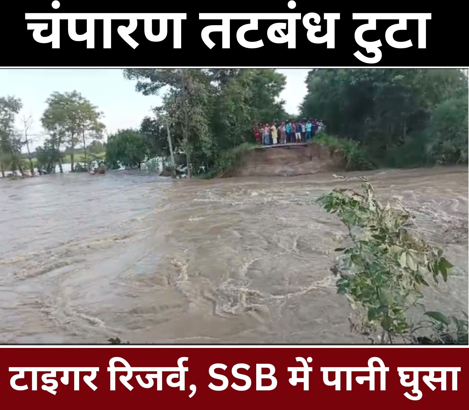 Bihar Flood News चंपारण तटबंध, जो बेतिया से लेकर चखनी गांव तक फैला हुआ है, के ध्वस्त होने से लगभग चार पंचायतों और दो दर्जन गांवों में बाढ़ का पानी घुस गया है। इस तटबंध के टूटने से रतवाल, चंद्रपुर, भिराड़ी, पतीलार, लक्ष्मीपुर, सीतापार, चैनपुर, मौजा टोला सहित चार पंचायतों के गांवों में तेजी से पानी भर गया है, जिससे कृषि भूमि और घरों को भारी नुकसान हुआ है।